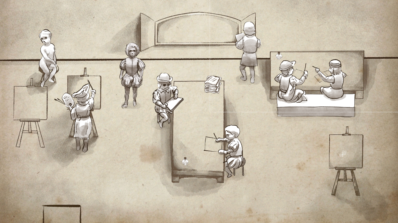 In Bottega, play as the apprentice of a renowned renaissance painter. In the workshop, do chores to gain the respect of the artists at the workshop, before slowly being asked to do more painting-related tasks. Manage your time to progress faster.
